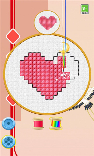 1、玩家需要利用绣针在绣布上点缀出相似的图案,随时随地完成自己的创作。