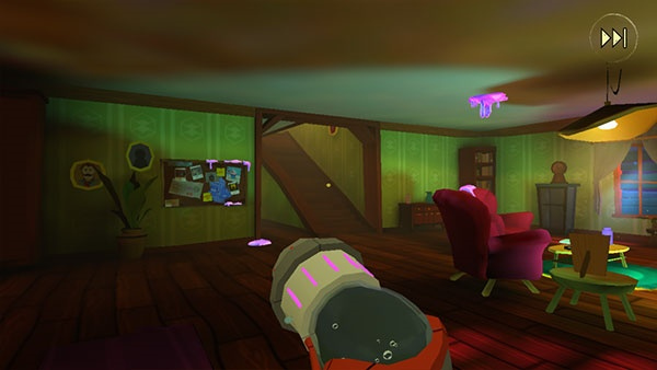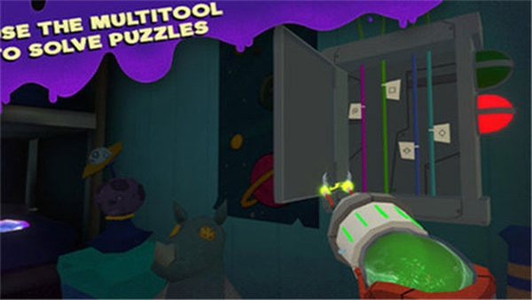 2、找到电池并安装后,将角色移动到房门前,点击“Use Tool”吸取粘液,然后再点击门把手就能顺利出门了。