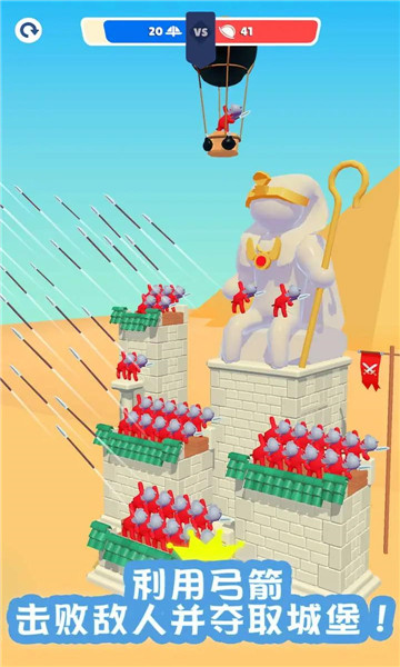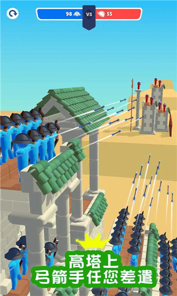 1、游戏中玩家需要利用弓箭将高塔上的兵力全部击败,顺利夺取敌人的城堡。