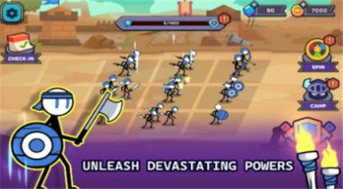 游戏的玩法非常丰富,图片和场景都非常逼真,在这款游戏中,玩家要建立属于自己的火柴人大军,并通过培训,让他们成为最强大的火柴人军团,对抗入侵的敌人。