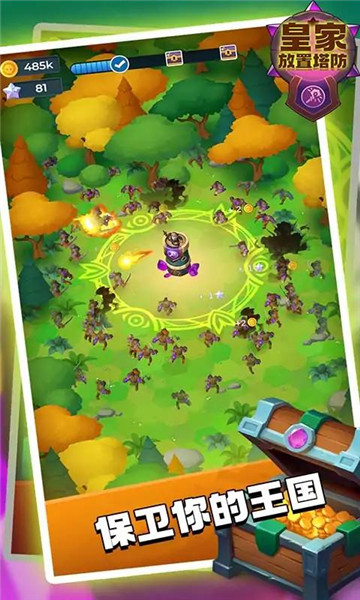 下载皇家放置塔防是一款趣味性十足的策略塔防类游戏,游戏中玩家需要利用的塔防来抵御各式各样的敌人,超多有趣的策略冒险内容等你来感受,通过不断的战斗来提高塔防的实力,合理进行搭配,参与后续更有难度的挑战。