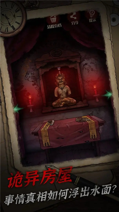 下载冥宅谜案下载是融合解谜与冒险要素的恐怖剧情手游,玩家将在阴森的府邸中寻找线索揭开重重谜团。游戏设计了丰富的环境互动和机关装置,需通过细致观察与逻辑推理才能突破难关。独特剧情分支与多结局设置增强了重玩价值,每一次选择都可能带来不同体验。现在就来下载安装冥宅谜案安卓手游版,亲手揭开冥宅中的秘密,踏入扣人心弦的恐怖冒险之旅吧!