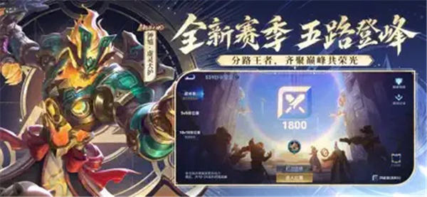 ①巅峰赛系统升级 :新赛季巅峰积分拆分为五条分路积分,每条分路独立进行排名,玩家们可选择最擅长的分路参与,追求战区、国服最强等巅峰分路荣耀称号。