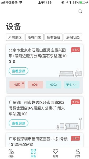 2.根据项目,区域,确定房源,可以随意组合,便于管理者对不同店铺进行等级管理。