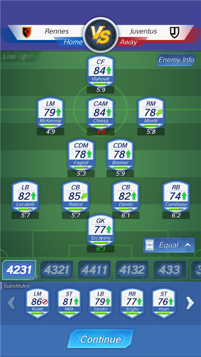 4、比赛过程简化,比赛自动计算结果,每场结束后都会获得经验值提升球技。
