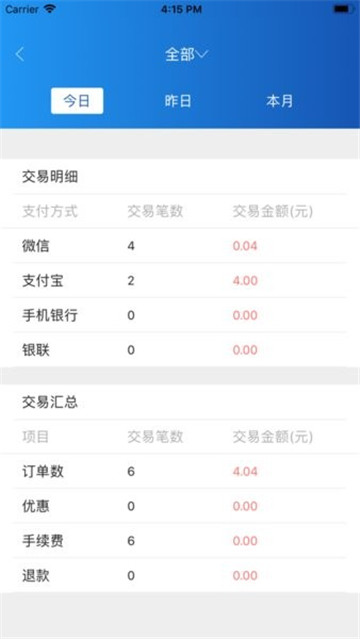 2.可以查看用户的店铺在过去的一天内付款和详细的交易明细,收入支出一目了然。