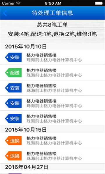 下载格力新派工系统为员工打造了一个非常方便的线上工作平台,装维工人们能够让工作流程更加简洁高效,解决了许多纸质工作的繁琐问题,让工作环节变得精简和快速,给顾客也提供了更有保障的服务。