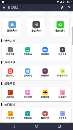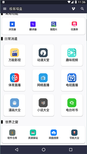 下载极客喵盒旧版本是一款多用途的移动工具盒应用,汇集百款应用程序,可以让你轻松地观看到各种影视、音乐、动漫、小说等内容,为你提供最方便的体验,而且没有广告和费用。
