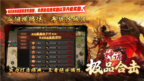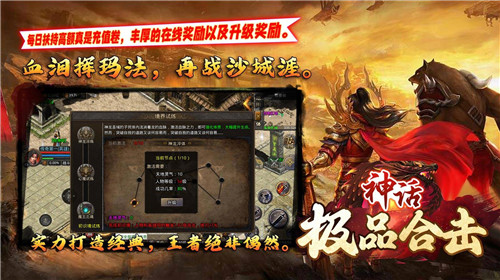 下载神话极品合击是一款非常刺激的传奇类游戏,游戏中玩家需要不断的通过战斗来提升自己的实力,完成一系列的任务挑战还有超多惊喜和奖励等待着你,尽情感受一场独特的魅力,体验畅爽的热血对决。