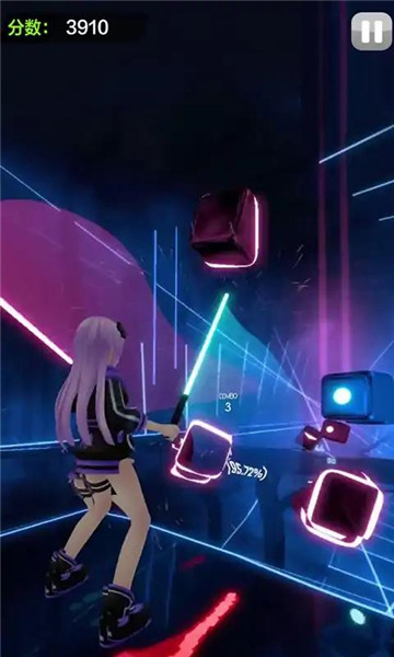 1、游戏中玩家将控制角色挥动一把光剑,在有限的时间里砍更多的方块,就可以获得丰厚的奖励。