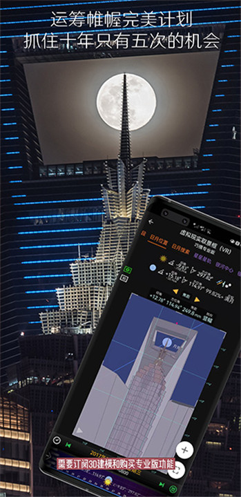 3.完全功能的应用,将地图与各种摄影工具以及日月银河星历功能相结合,来完成场景预可视化。