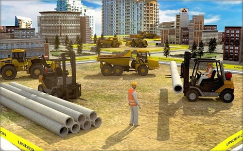 1.玩家需要把建筑仿真设备搬到建筑工地上,用卡车挖掘机把建材运到施工现场。
