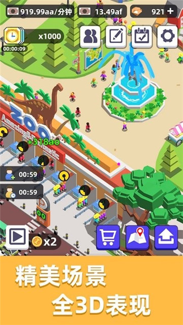 3.玩家们可以尽情的去创作,打开好玩的设备,把动物园开得更大,吸引更多的客户。