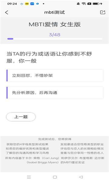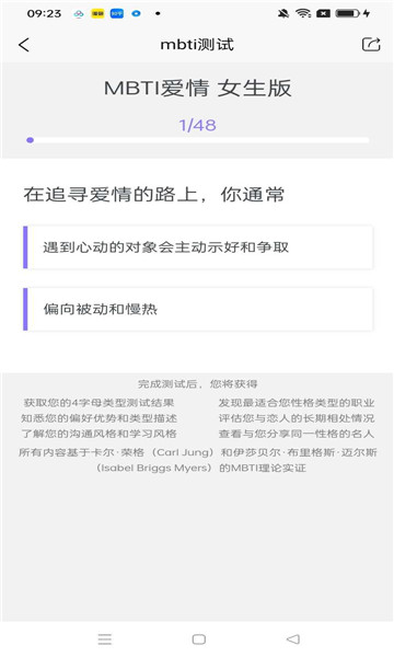 2、非常适合想要了解自己的用户,做完一整套题目就能获得你是个什么类型的人格。