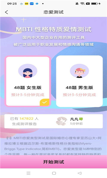 2、测试出你的当前恋爱人格,寻找到另一半适合你的交友对象。