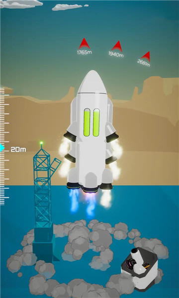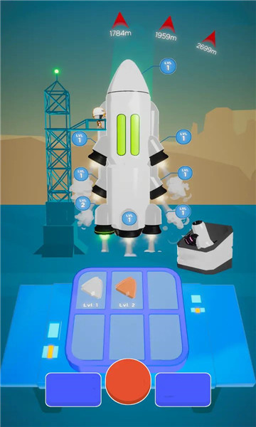 1、不断解锁更多的组建来加强火箭的推进发射,突破自己的极限记录。