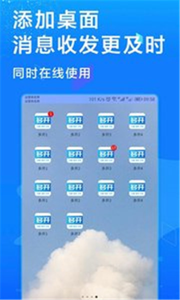 3.多帐号同步在线,生活与工作不受影响,娱乐与游戏的双重收益,带来手机使用收益最大化。