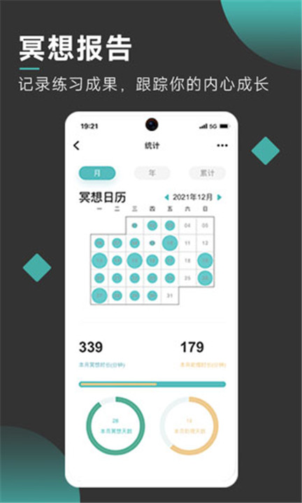 4、在我的这里,用户可以查看冥想的时长、统计、练习记录等,还有每日提醒等。