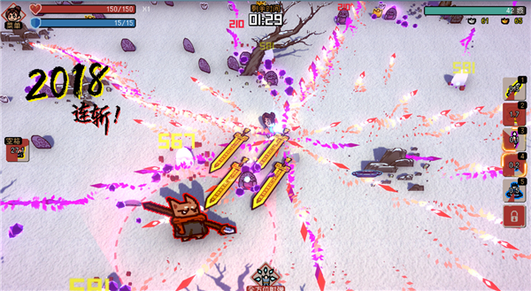 3、精心制作的2.5D像素画风,花里胡哨的技能特效,特效越帅打人越痛。