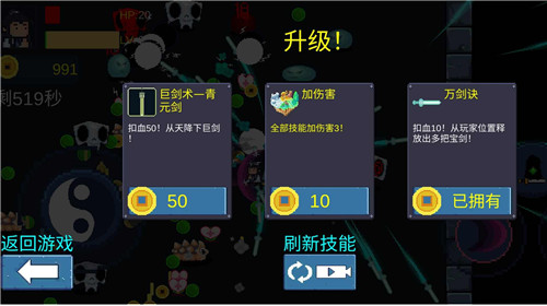 3、升一级就会有随机的技能给到你,帮助你更好的参与到后续的挑战当中。