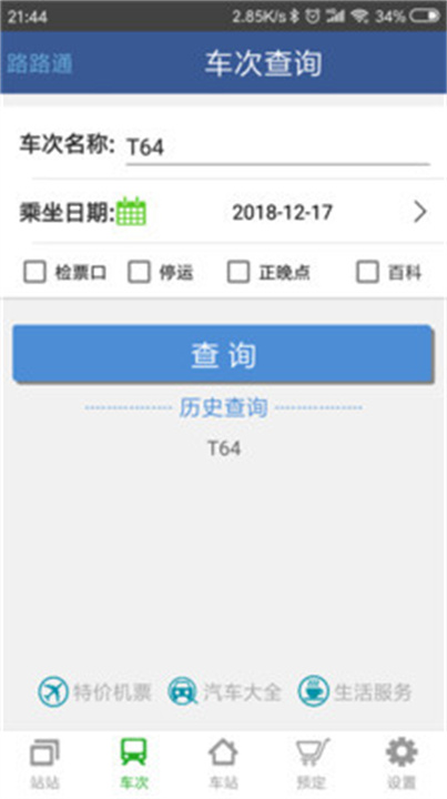 2、点击“站站查询”,输入出发地与目的地,选定日期后点击“查询”。