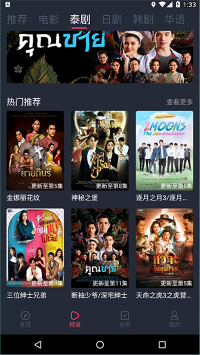 2、火爆的泰剧资源,《神秘之堡》、《金娜丽花纹》、《三位绅士兄弟》等,可以随时来观看。