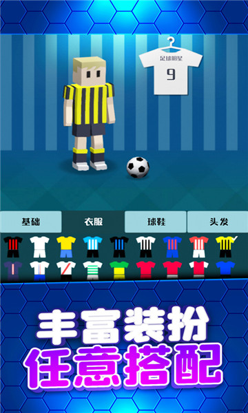 3、选择各种射门的方向,控制好你脚上的力量。还可以装备你独特的球衣,让更多人认识你。