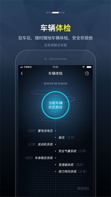 2.离车状况可为车主提供违章查询、经销商网点查询、售后服务、远程访问和控制等相关服务。