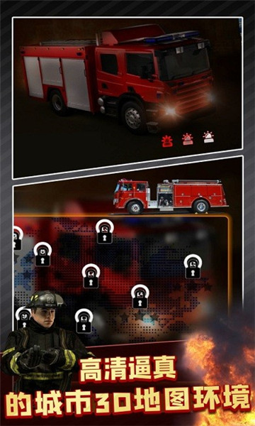 如果玩家们能完成眼前的一个个救火任务,就能在每次成功之后得到丰厚的奖励,还可以可以选择各种高压水炮,可以依靠自己清除目前的火焰,游戏内的消防车有很多种,每个的特点和外形都很酷炫。