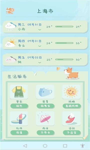 1、Q萌卡通的风格,轻松帮助你告别单调无聊的天气预报。