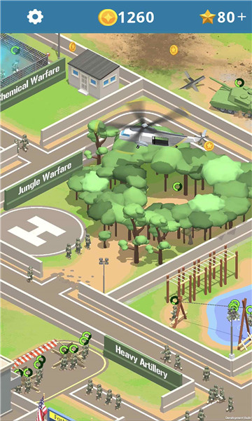 下载和平训练营带来一款轻松有趣的放置模拟体验,在这玩家将经营并建设一个庞大的军事基地,在这里需要完成一系列的军事训练,提供各种丰富的军事训练计划,从而更好的上战场为后续的军事行动时刻做好准备。