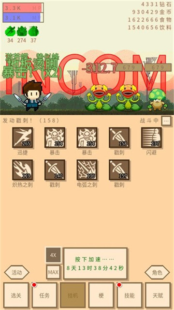 把挂机游戏和RPG游戏有机地融合在了一起,让玩家在游戏中获得了不一样的体验,会发现许多富有创意的行动,每个历险都是一个在宇宙中的偶然发现,许多内容可以定制,文字和行动的简练效果更好。