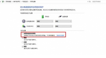 3、最后前往电源,找到关闭快速启动的按键,方式电脑长时间伪关机导致的卡顿。