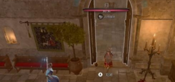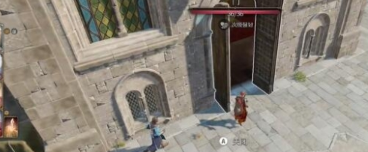3、进入房间之后来到走廊,在斜对面的大门处前往礼堂。