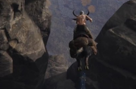 2、观察周边地形,如果是陡峭的岩壁就不要跳跃,找中间带有缓冲位置的,通过骑马进行二段跳减少减血量。