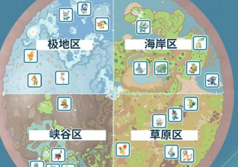 6、极地区包含火球鼠、火稚鸡、小火焰猴、波加曼、水水獭、炎兔儿六种宝可梦。