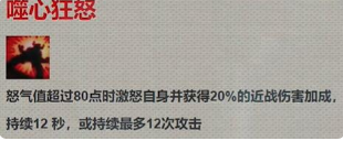 3、这个符文可以在我们怒气超过80的时候激怒自己,获得20%近战伤害提升,持续12秒或12次攻击。