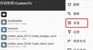 4、我们需要把下载好的反和谐补丁文件解压后点击右上角三个点然后选择全选。