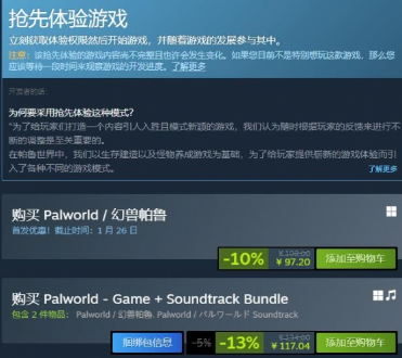 幻兽帕鲁怎么抢先体验?最近幻兽帕鲁已经上架了steam,现在游戏还是体验版本,正式版预计还需要一年,下面小编就为大家带来幻兽帕鲁抢先体验教程,感兴趣的话可以来了解一下