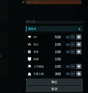 4、其他几个属性都可以通过属性点提升干涉,包括HP、体力、攻击、工作速度和负重上限等能力都能提升。