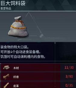 4、巨大的饲料袋是一个重要物品,可以放四个食材,在饥饿的时候自动进食。