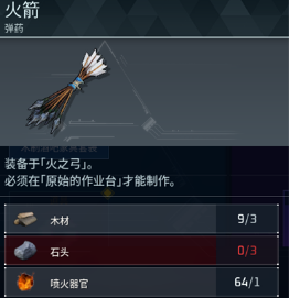 3、火箭只能装备在火之弓上,只能在原始工作台制作。