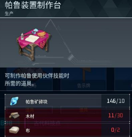 3、制作材料10个帕鲁矿碎块、30个木材2个布。