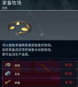 2、在帕鲁类中可以找到,需要50个木材20个石头、30个纤维才能制作。