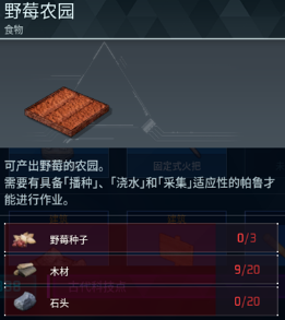3、所需材料为3个野莓种子、20个木材、20个石头。