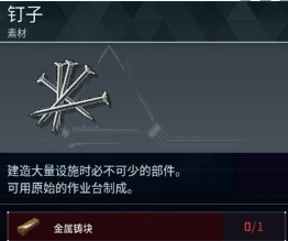 1、钉子在游戏中可以用来制作大量的设施和武器。