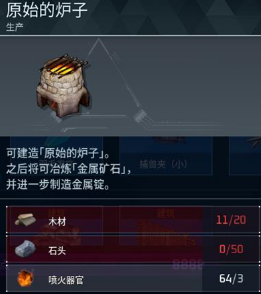 2、原始的炉子可以烧出金属铸块,是非常重要的道具。