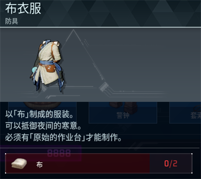 1、在游戏中我们可以在前期制作布衣服保暖和防护。
