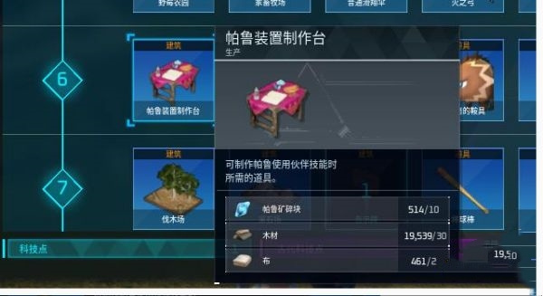 3、解锁后就可以在帕鲁装置制作台进行制作了。