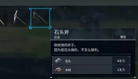 1、在游戏中我们需要现拥有工作台之后才能把斧子做出来,需要木材和石头才能制作斧子。